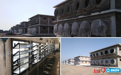 Putting the finishing touches on 18 double stories houses for breeder birds at Khanewal, Multan for Jadeed group. The houses are fully equipped with SKOV Combi-Tunnel systems, including a total of 216 BlueFans. All of the equipment was state of